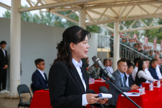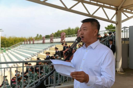 迟海波代表学校向承训教官致以崇高敬意,并向圆满完成军训任务的新生表示热烈祝贺。同时提出三点期许:其一,须巩固军训成果,发扬拼搏精神,尽快适应大学生活节奏;其二,应秉承"铸诚精艺"校训精神,与学校同舟共济、荣辱与共;其三,明确发展目标,追求全面发展,立志成为卓越职业人才。
