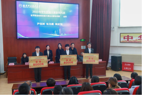 大会以“总结过往辉煌,启航崭新征程” 为核心,表彰2025年赛事获奖学子,凝聚全院师生力量,正式拉开新一年技能比拼的序幕。大会现场,党总支书记马香宣读获奖名单,学院领导为获奖代表颁奖,掌声中饱含对学子拼搏精神的肯定与赞誉。